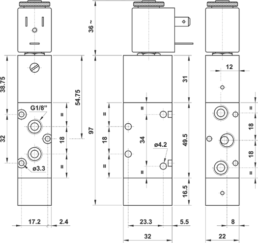 5/2 1/8" comando elettrico, ritorno a molla pneumatica, senza bobina