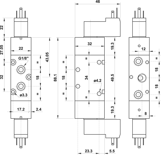 5/2 1/8" doppio comando elettrico con elettropilota 15 mm, 24V DC