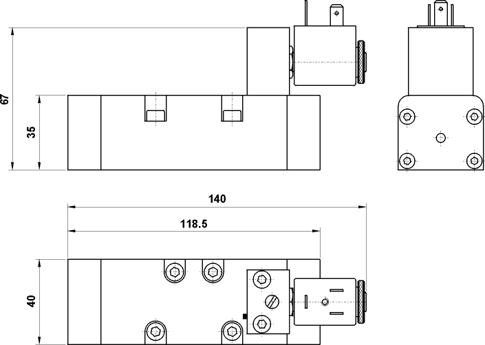 ISO 1 5/2 comando elettrico alimentazione separata, ritorno a molla, senza bobina