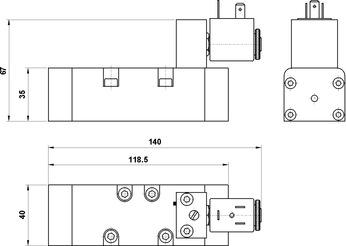 ISO 1 5/2 comando elettrico, ritorno a molla pneumatica, senza bobina