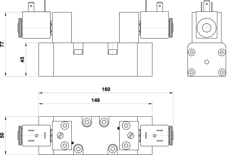 ISO 2 5/3 centri aperti, doppio comando elettrico, senza bobine