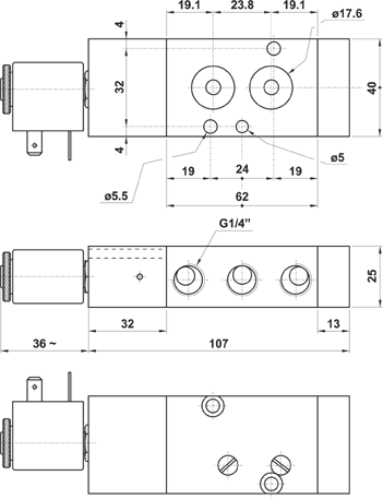 5/2 1/4" NAMUR comando elettrico - ritorno a molla, con sede sensore