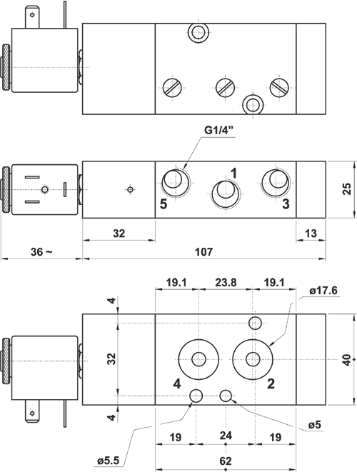 Questa elettrovalvola NAMUR può essere utilizzata come 5/2, 3/2 NC, 3/2 NA, 2/2 NC, 2/2 NA senza dovere effettuare settaggi o modifiche sul corpo valvola o inserire adattatori.