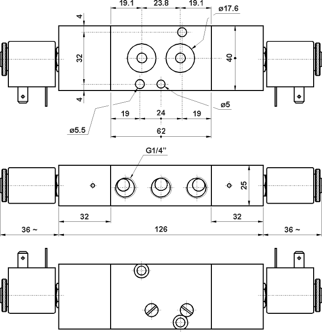 NAMUR 5/2 1/4" doppio comando elettrico, senza bobine