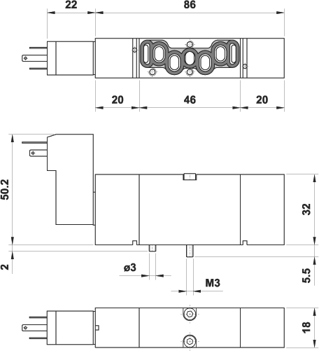 VDMA 18 mm 5/2 comando elettrico 220V 50/60Hz alimentazione separata, ritorno a molla