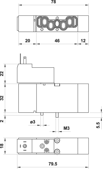 VDMA 18 mm 5/2 comando elettrico 24V DC, ritorno a molla