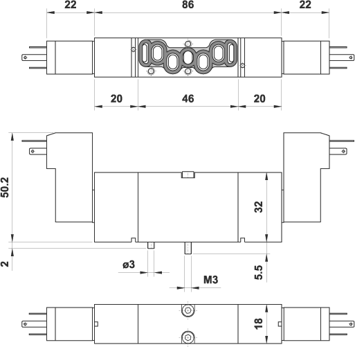 VDMA 18 mm 5/2 doppio comando elettrico 24V DC alimentazione separata