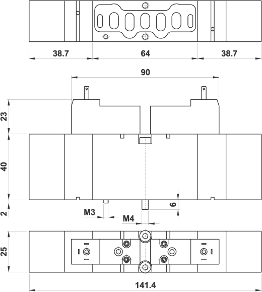 VDMA 25 mm 5/3 centri chiusi, doppio comando elettrico 24V DC