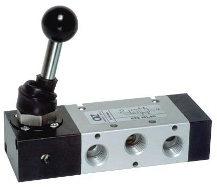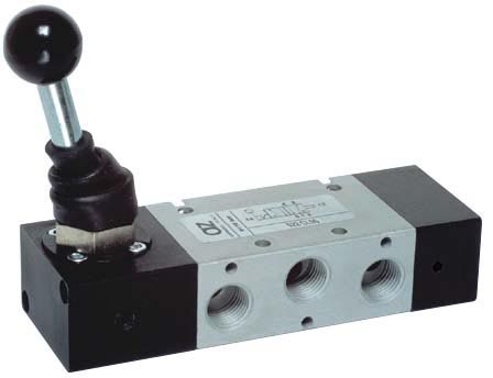 5/3 1/4" centri in pressione, leva 90°, tre posizioni stabili
