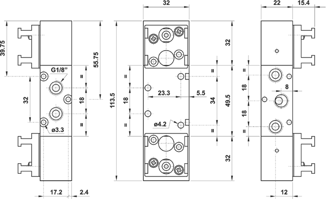 5/2 1/8" doppia interfaccia per attuatore da pannello 90°