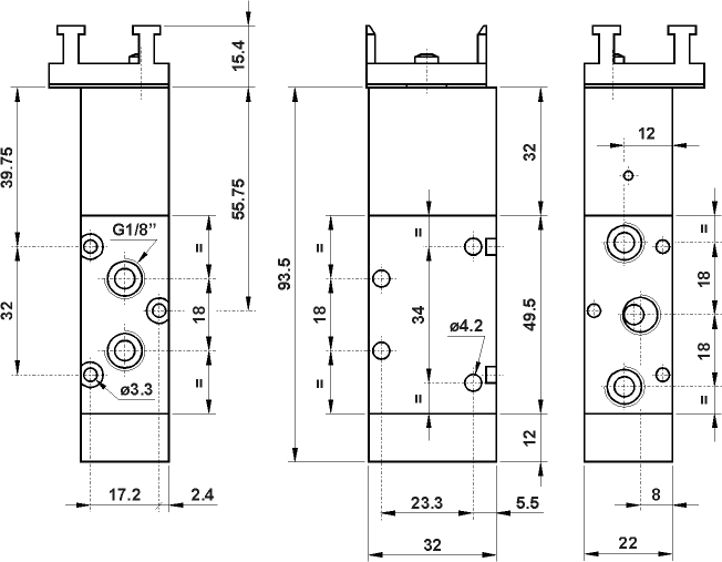 5/2 1/8" interfaccia per attuatore da pannello, ritorno a molla