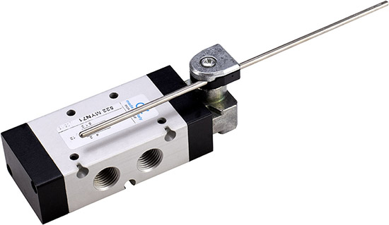 Valvola ad azionamento meccanico 5/2 1/4" leva rullo laterale, ritorno a molla