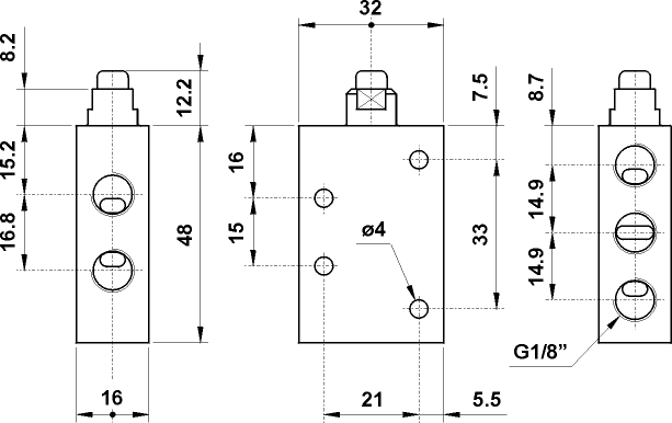 16 mm 5/2 1/8" puntale, ritorno a molla