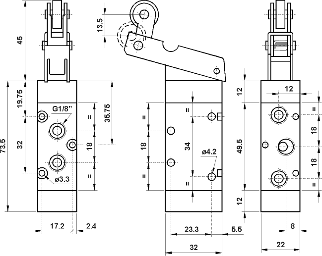 5/2 1/8" leva unidirezionale, ritorno a molla