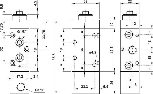 5/2 1/8" puntale, riposizionamento a comando pneumatico