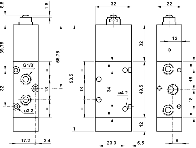 5/2 1/8" puntale servopilotato, ritorno a molla