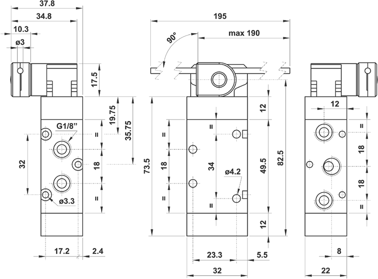 Valvola ad azionamento meccanico 5/2 1/8" asta regolabile ø3 in acciaio INOX, ritorno a molla