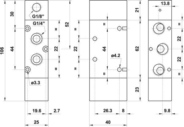 5/2 1/4" comando pneumatico, ritorno a molla, fondello rinforzato