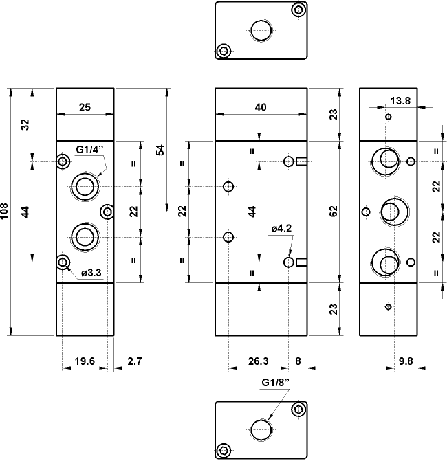 5/2 1/4" doppio comando pneumatico attacco superiore