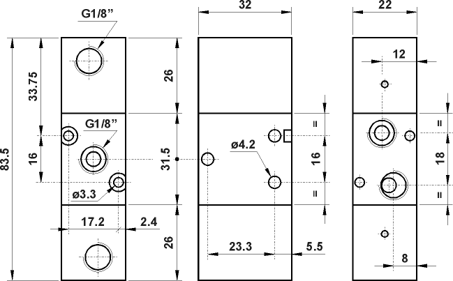 3/2 1/8" doppio comando pneumatico, con differenziale