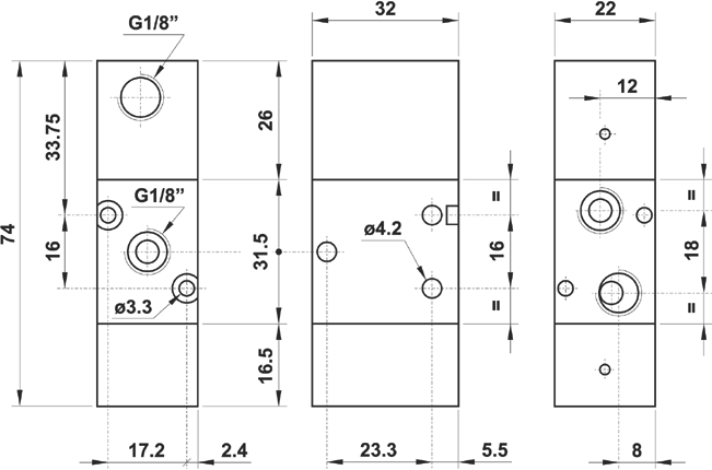 3/2 1/8" NC comando pneumatico, ritorno a molla pneumatica
