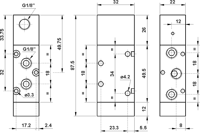 5/2 1/8" comando pneumatico, ritorno a molla