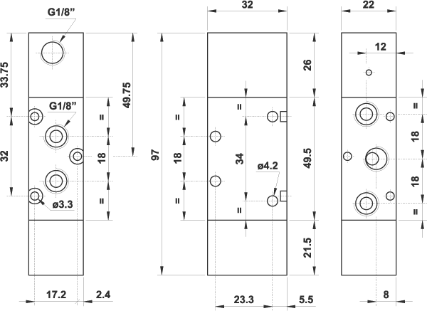 5/2 1/8" comando pneumatico, ritorno a molla, fondello rinforzato