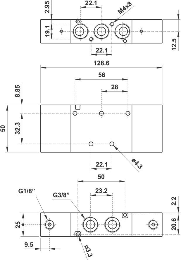 5/2 3/8" doppio comando pneumatico