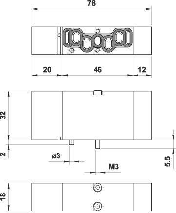 VDMA 18 mm 5/2 comando pneumatico, ritorno a molla