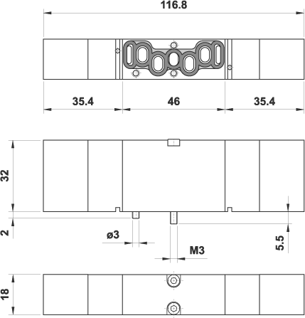 VDMA 18 mm 5/3 centri aperti, doppio comando pneumatico
