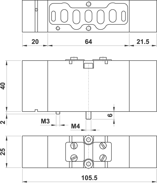 VDMA 25 mm 5/2 comando pneumatico, ritorno a molla