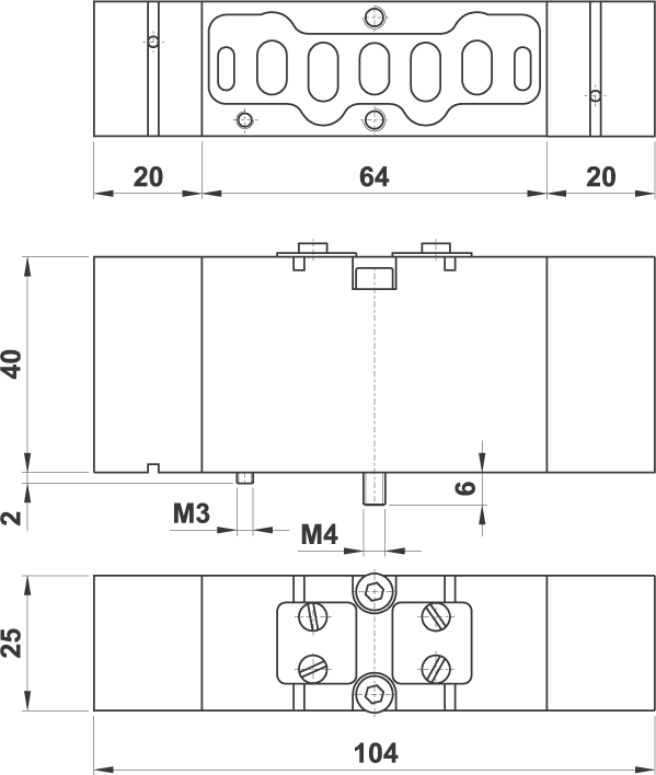 VDMA 25 mm 5/2 doppio comando pneumatico