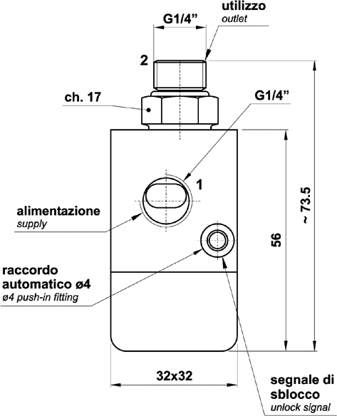 Valvola di blocco bidirezionale a comando pneumatico G1/4"