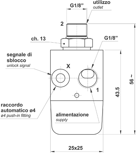 Valvola di blocco bidirezionale a comando pneumatico G1/8"